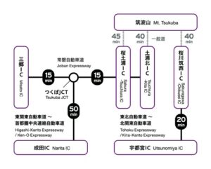 土浦北インターチェンジ出口より国道125号線、下妻・つくば方面へ。