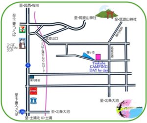 筑波霞ヶ浦りんりんロードを渡って、少し行くと左側にキャンプ場の看板が見えます。