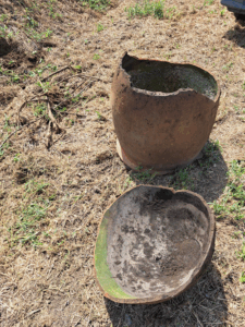 とりあえず掘り出して、うまく修復できればキャンプ場で金魚鉢にでもしようかなと。