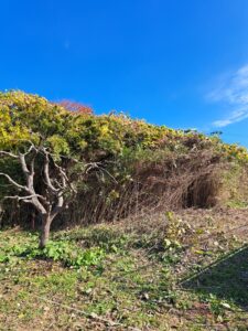無事に伐採しおわって、切った竹は立てかけてとりあえずこんな感じ。