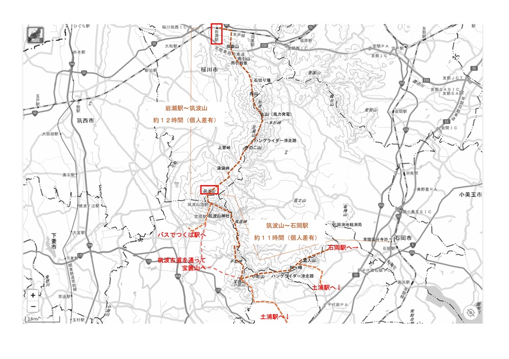 筑波山縦縦走路(JR水戸線・岩瀬駅~筑波山~JR常磐線・石岡駅・土浦駅)